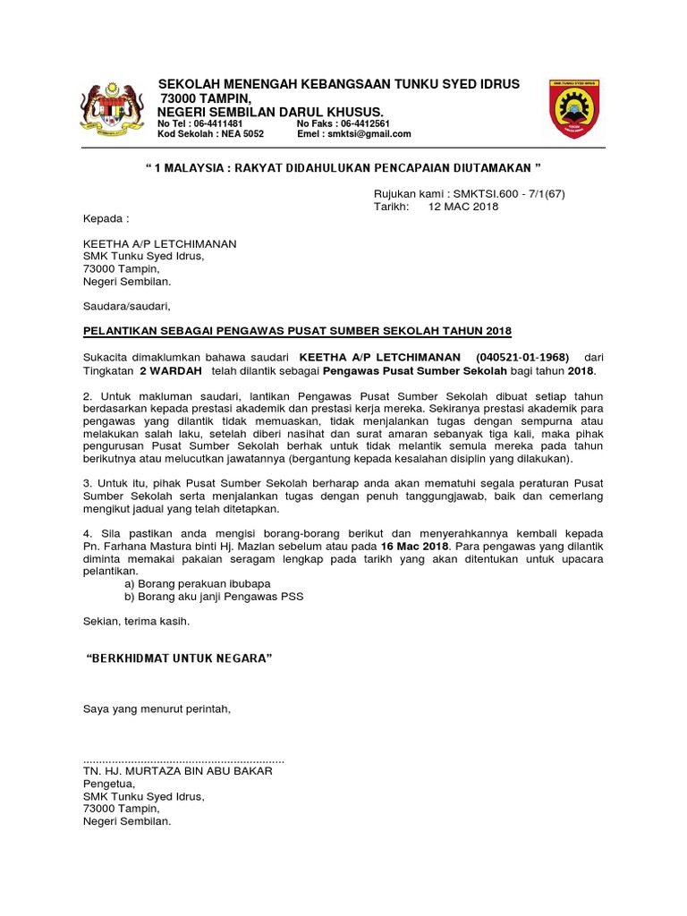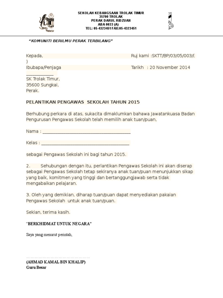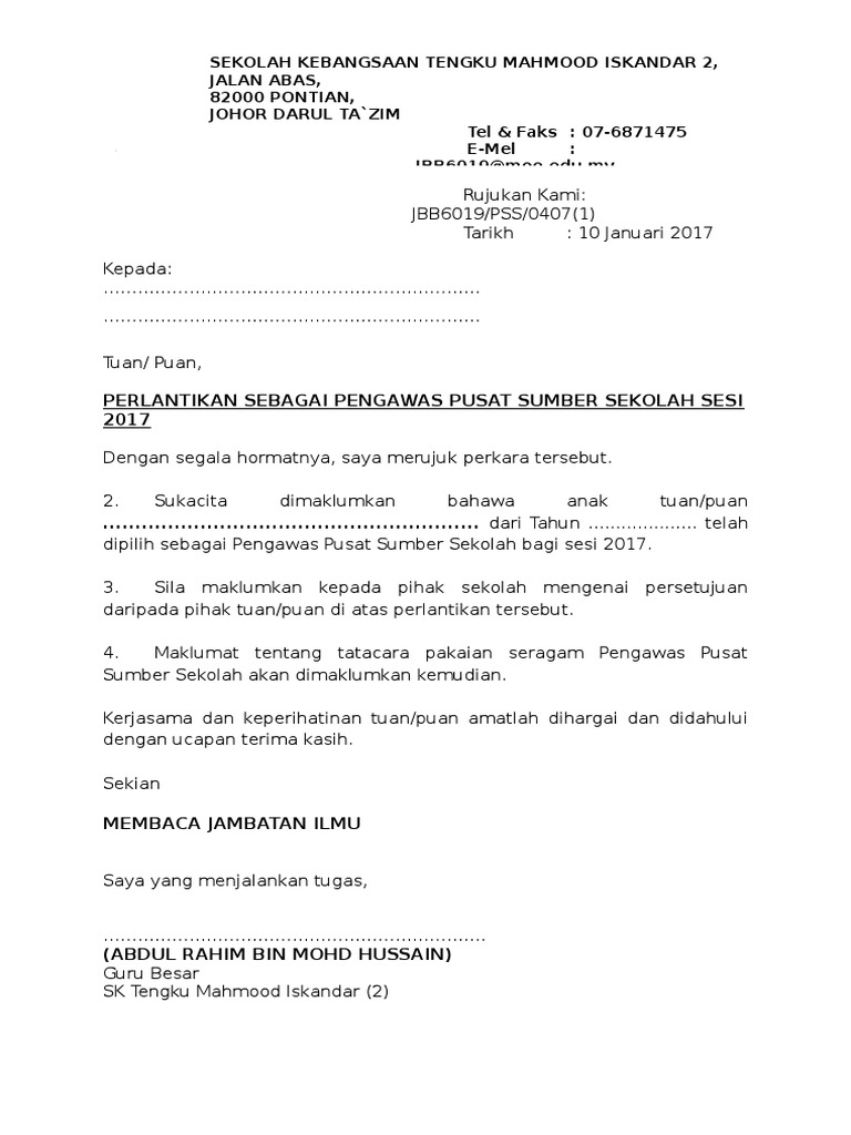Contoh Surat Rasmi Pelantikan Pengawas Pdf
